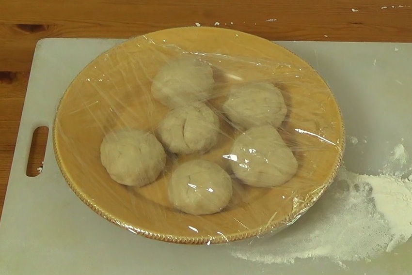 Divide the dough into 6 pieces (I used a scale for this because I'm really bad at eyeballing it. Each piece was 115-120 g, but your dough may be lighter or heavier depending on how much water it contains.) Knead each little dough ball into a round shape.