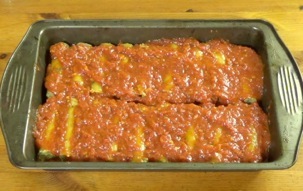 Pour 1 cup of tomato sauce into the bottom of a 9X13" pan.