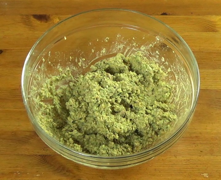 Clean, trim and coarsely grind the mushrooms in a food processor. Saute over medium heat in 1 Tbl olive oil and 1/4 tsp salt about 10 minutes until soft. Remove heat and let cool.