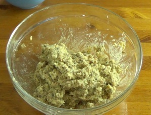 Grind up the raw cashews until the pieces are around the size of breadcrumbs.