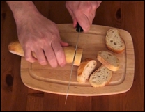 Just before serving, slice some fresh baguette in quarter-inch slices.