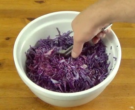 one head of purple cabbage, thinly sliced (makes about 600 g (20 oz.), sliced)
